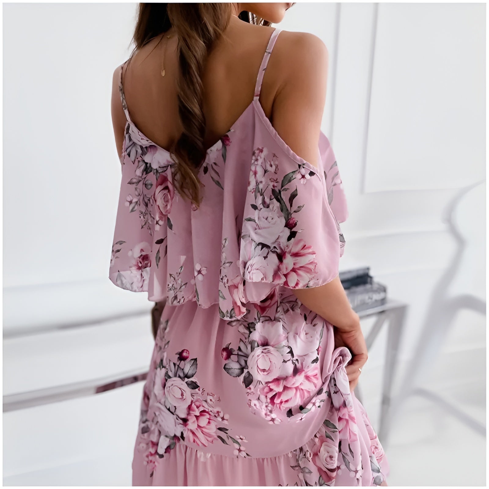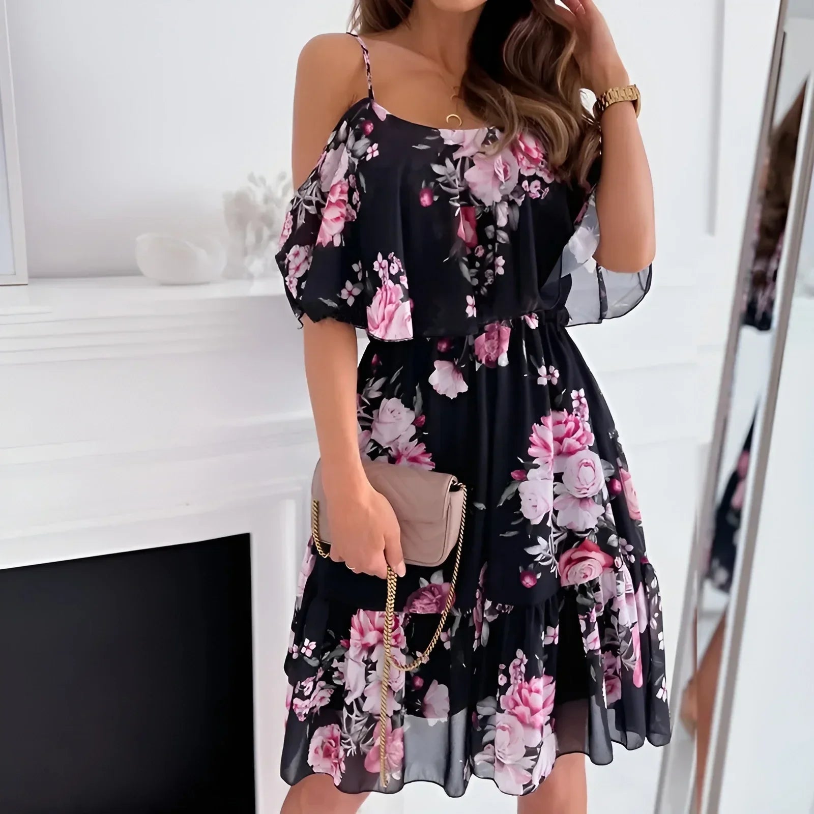 Sabrine™ | Robe fleurie à épaules dégagées